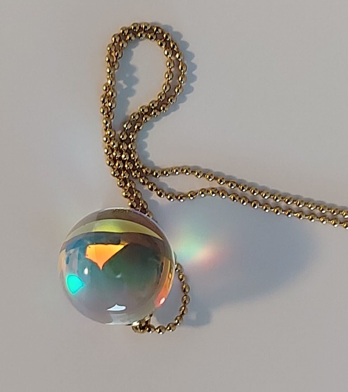De Deva bol hanger is verkrijgbaar met lange vergulde ketting, goud koord en kort kettinkje in goudkleur, zodat je de Deva bol op meer manieren kunt dragen.